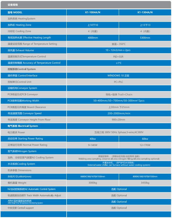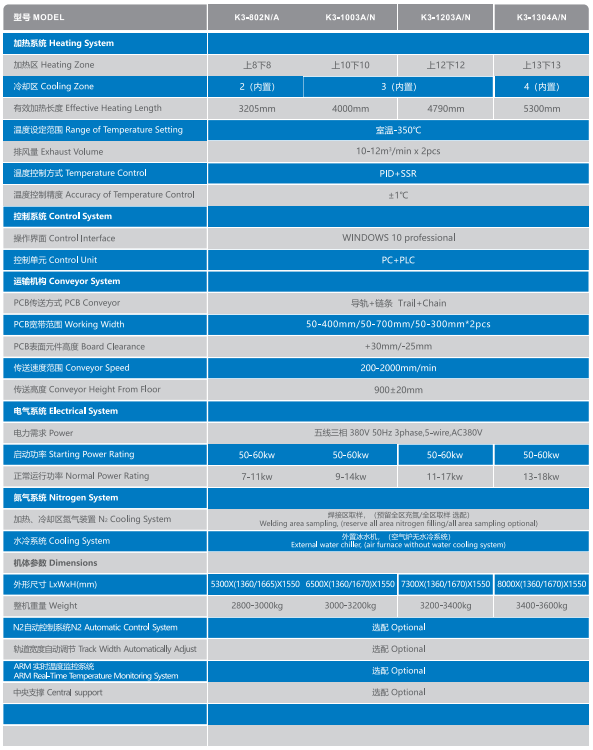 K 系列回流焊爐為您提供以下配置產(chǎn)品: